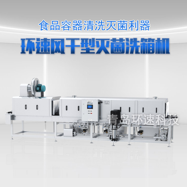 风干式洗箱机产品简介:风干式洗箱机技术应用于食品或容器具的清洗和消毒设备。食品、容器具等待清洗器具从灭菌洗筐机输入端进入清洗隧道,经过预洗、主清洗、漂洗、最后输出,完成清洗过程。料筐清洗机主要用于屠宰、肉类、水产、蔬果、饮料、酿造等食品加工厂或食品物流中心、配送中心等,也适用于各种周转筐、盘、箱、托盘、等容器具的清洗和消毒。可节省用水量达70%,可比古老的人工清洗方法能节省人力7-8人。